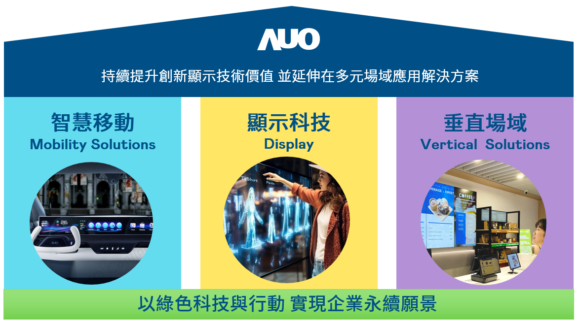我們持續推動「雙軸轉型」,在精進顯示技術附加價值(Go Premium),與深化垂直市場應用(Go Vertical)的策略下,對應凯发k8的優勢競爭力與趨勢,我們奠定顯示技術智慧移動垂直場域三大永續營運支柱,在顯示技術領域的根基之上,延伸布局多元場域應用解決方案。將先進顯示科技助力智慧移動及垂直場域發展,並以綠色科技與行動為實踐,在轉型之路上貫徹永續經營之願景。